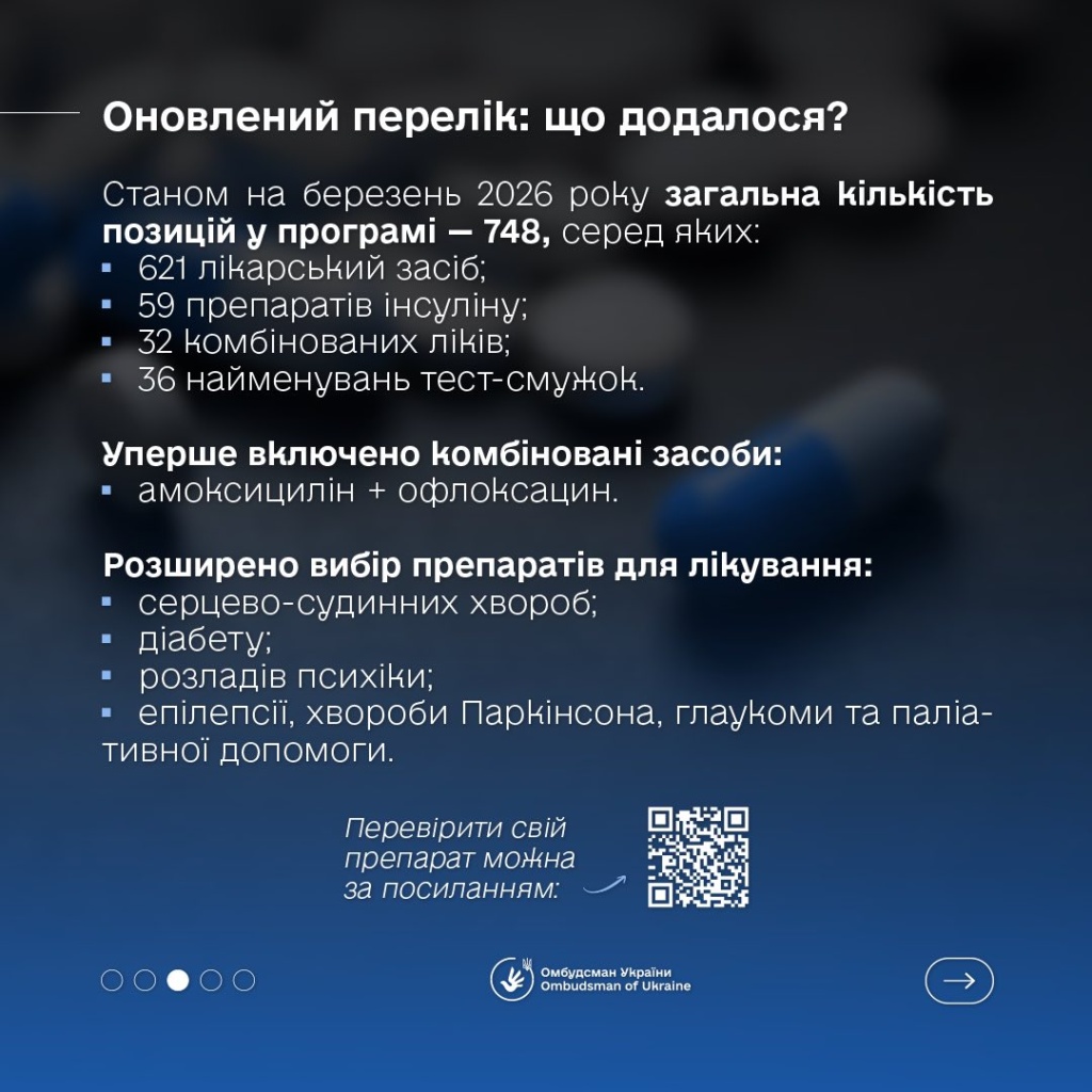 Як повідомив Уповноважений Верховної Ради з прав людини Дмитро Лубінець, із 31 березня 2026 року перелік програми реімбурсації поповнився 37 новими препаратами.