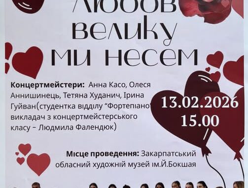 Початок концерту о 15:00. Локація — Закарпатський обласний художній музей ім. Й. Бокшая на площі Жупанатській, 3. Організатори обіцяють теплу й натхненну атмосферу, яка стане ідеальним прологом до свята закоханих.