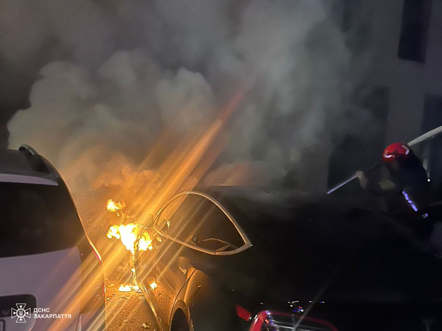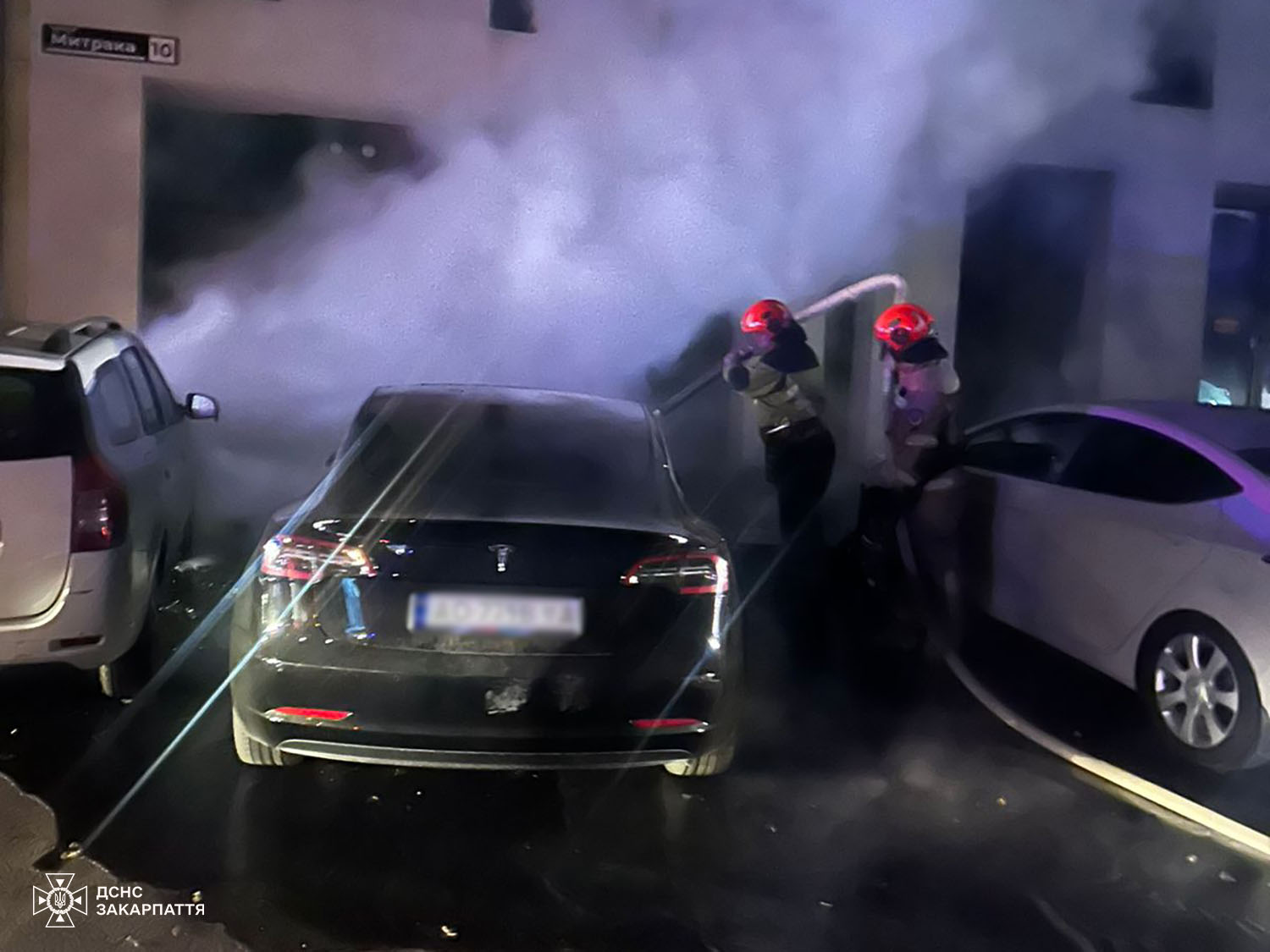У ніч на 10 жовтня в Ужгороді спалахнув електромобіль Tesla Model 3. Пожежа сталася на вулиці Олександра Митрака.
