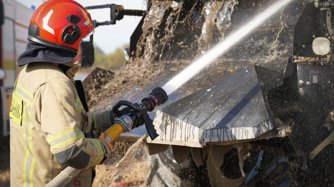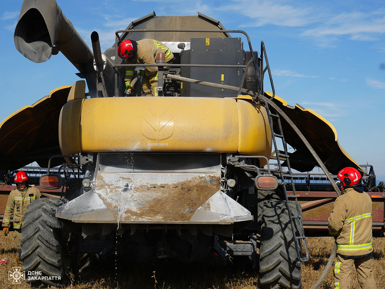 Інцидент із загрозою масштабної пожежі стався днями на полі в межах Холмківської громади, де під час роботи загорівся комбайн New Holland CR980.
