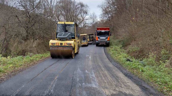 Підрядна організація наразі влаштовує вирівнювальний шар покриття на ділянці між населеними пунктами.