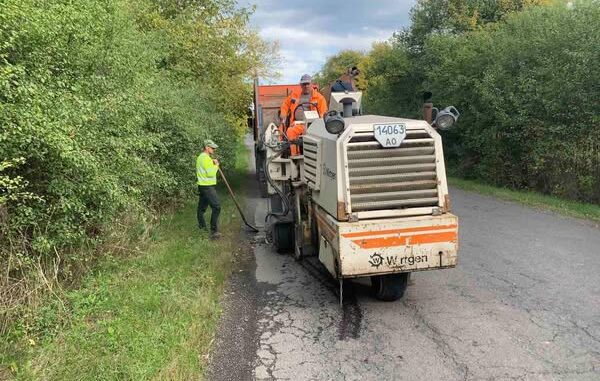 Підрядники Служби місцевих автомобільних доріг Закарпаття застосовують спеціальну техніку для холодного фрезерування пошкоджених ділянок, а також укладають гарячий асфальтобетон.