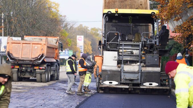 Нагадаємо, з вересня на цій вулиці триває капітальний ремонт. На правій смузі вже провели фрезерування покриття, встановили нові зливоприймачі, замінили бордюри та уклали вирівнюючий шар асфальтобетону.