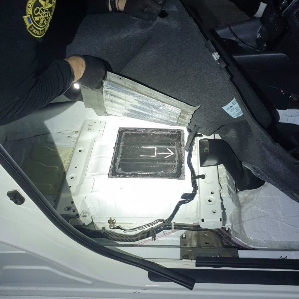 Під час поглибленого огляду, за участі кінологічної команди, у підлозі автівки митники виявили спеціально обладнаний тайник. Після демонтажу передніх сидінь та обшивки з конструктивних порожнин було вилучено 1 764 пачки сигарет різних марок без акцизних марок України.