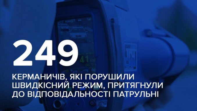 Упродовж минулих вихідних патрульні поліцейські зафіксували 249 випадків перевищення встановлених обмежень швидкості.