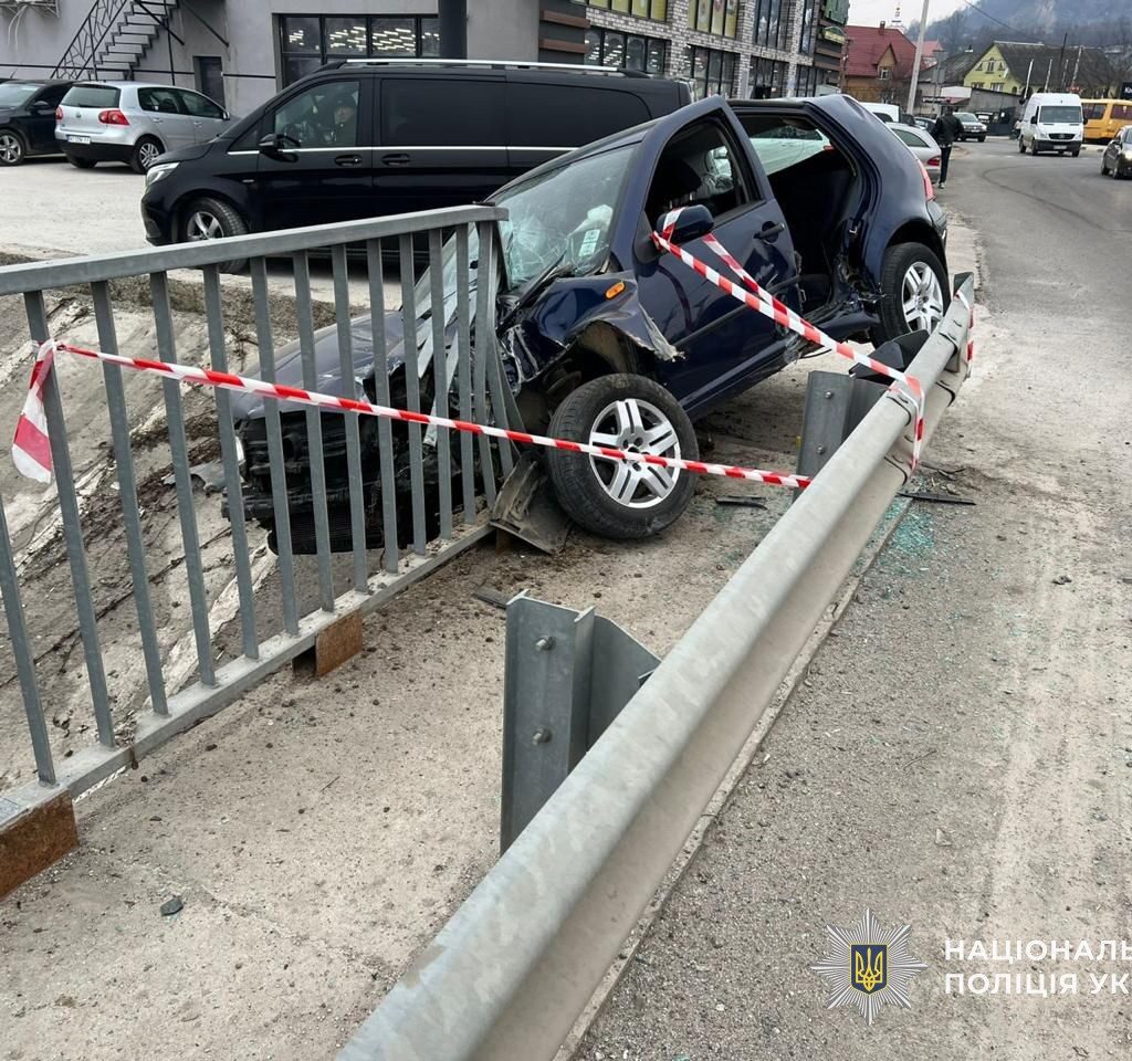 За інформацією поліції, 26-річний мешканець села Заріччя, керуючи автомобілем Volkswagen Golf, не впорався з керуванням та в’їхав у металевий відбійник на мосту.
