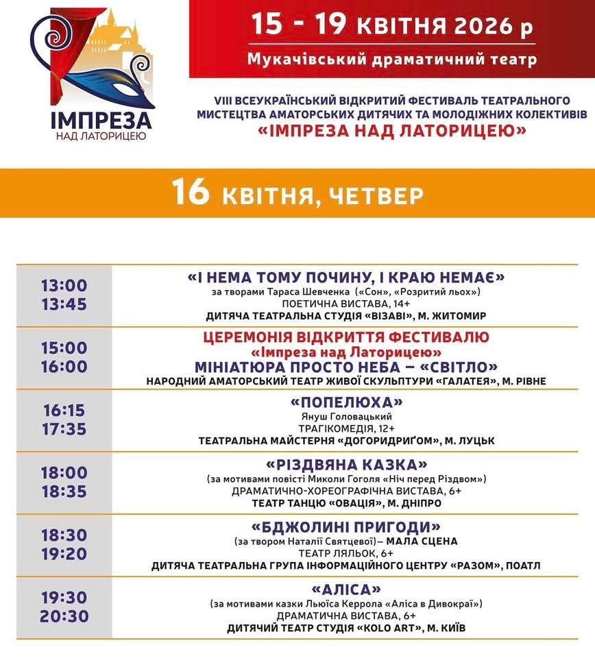 В Ужгороді триває VIII Всеукраїнський відкритий фестиваль театрального мистецтва аматорських дитячих та молодіжних колективів «Імпреза над Латорицею», який уже встиг подарувати глядачам яскраві емоції та незабутні враження.