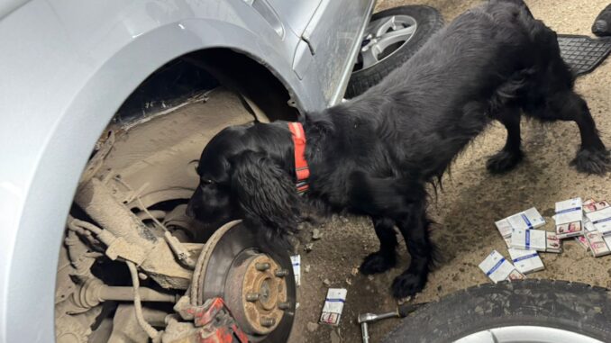 На митному посту «Вилок» на українсько-угорському кордоні кінологічна команда Закарпатської митниці запобігла спробі незаконного вивезення великої партії сигарет.