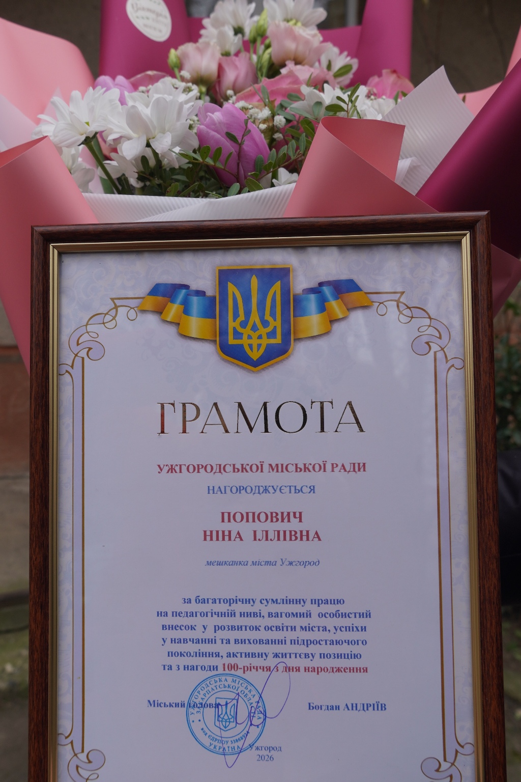 В Ужгороді відзначили особливу дату – 100-річний ювілей Ніни Попович, учительки, яка присвятила життя дітям та освіті.