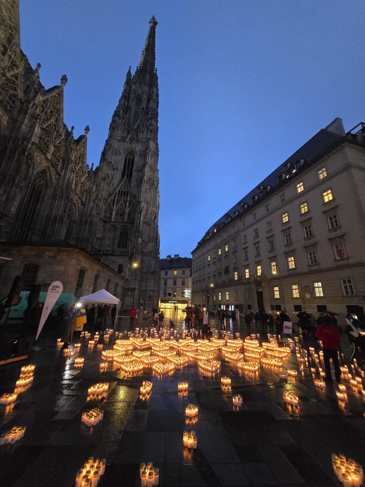 Акція покликана нагадати про мільйони українських дітей, які вже четверту, найважчу воєнну зиму зустрічають у страху, холоді та нестатках. Свічки на Штефансплац стали знаком солідарності, підтримки та віри в те, що українці, які опинилися під загрозою, не залишаться наодинці – їм допоможуть теплом, продуктами й дахом над головою.