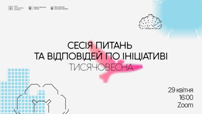29 квітня Міністерство культури України організує Q&A-сесію, присвячену державній ініціативі «Тисячовесна». Під час онлайн-заходу українські митці, креатори та представники культурної сфери зможуть отримати відповіді на запитання щодо участі у програмі та подання заявок.
