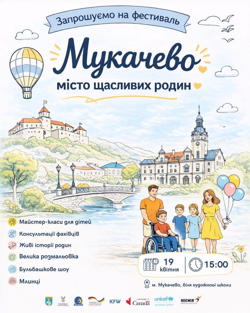 У Мукачево 19 квітня відбудеться сімейний фестиваль «Мукачево — місто щасливих родин», присвячений темі підтримки дітей та сімейних форм виховання.
