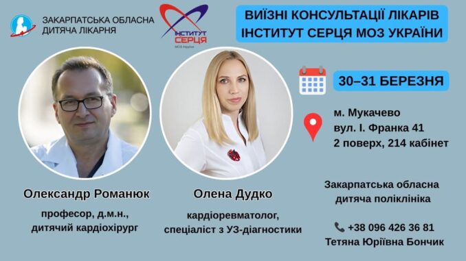 Консультації відбудуться 30–31 березня у Закарпатській дитячій обласній поліклініці за адресою: вул. Івана Франка, 41, 2 поверх, кабінет 214.