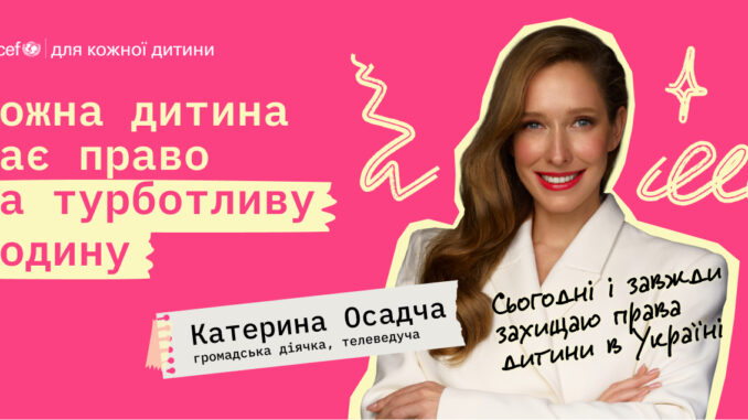 Телеведуча та громадська діячка Катерина Осадча наголошує: «Кожна дитина має право на родину. Я як мама трьох хлопців (Іллі, Данила і Івана) це достеменно знаю. Наскільки важливо, аби у дитини був свій дорослий поруч. Коли вони починають їздити на велосипеді, діляться всім сокровенним, розповідають про своїх друзів, про перше кохання, про те, наскільки їм складно чи радісно у житті. Якщо біологічні батьки з якихось причин не можуть піклуватися про власну дитину, існують різні сімейні форми виховання: усиновлення і не тільки».