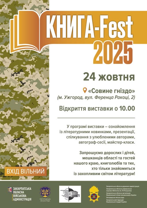 24 жовтня в Ужгороді відбудеться Книга-фест 2025 — масштабна культурна подія, яка об’єднає поціновувачів української літератури з усього Закарпаття.