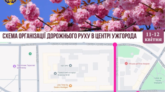 Ужгород на вихідних змінить рух: перекриття через сакури та великодній ярмарок