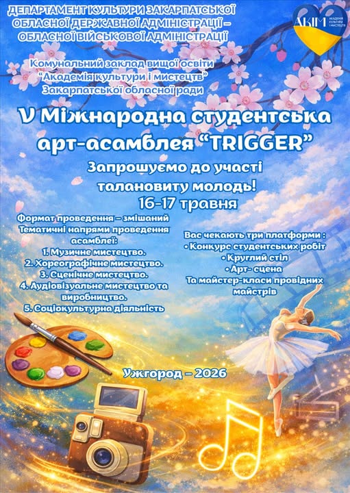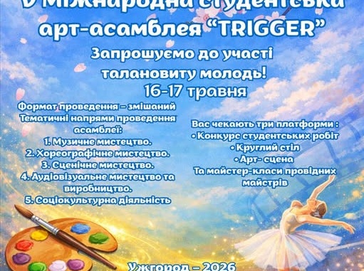 В Ужгороді відбудеться V Міжнародна студентська арт-асамблея «TRIGGER», яка об’єднає творчу молодь з різних куточків України та світу.