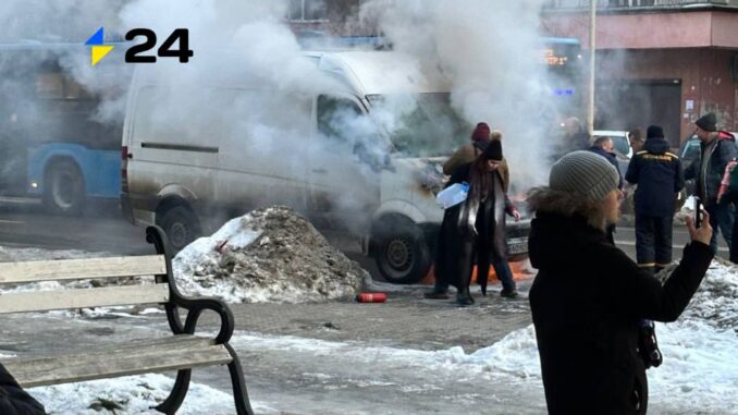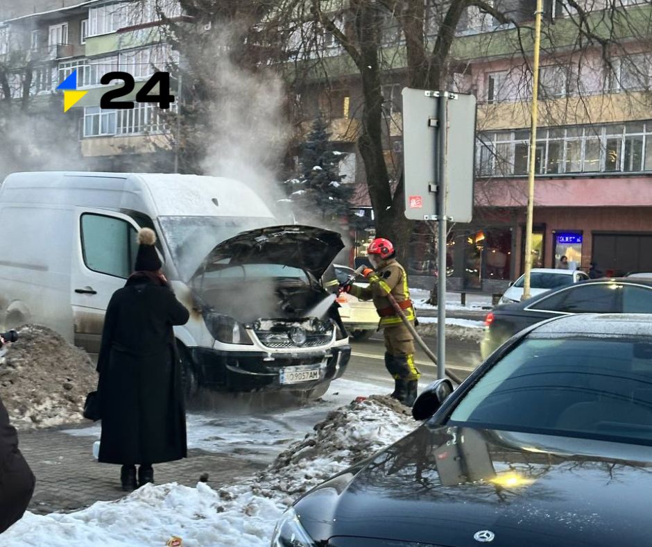 В Ужгороді на вулиці Івана Чендея загорівся білий Mercedes Sprinter (відео, фото)