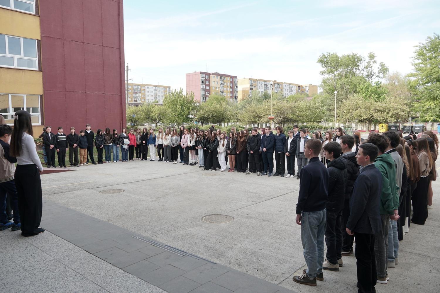 До церемонії долучилися представники місько влади, представники міської влади, військові, педагоги, учні та батьки. Учасники вшанували пам’ять загиблих хвилиною мовчання.
