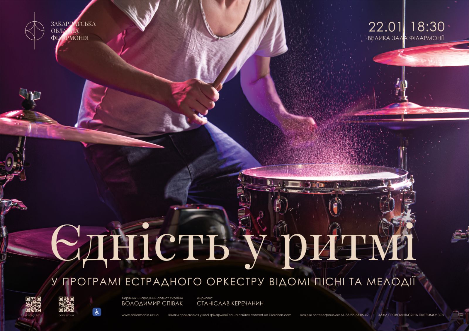 Закарпатська обласна філармонія запрошує ужгородців та гостей міста на концерт живої музики «Єдність у ритмі», який відбудеться 22 січня.