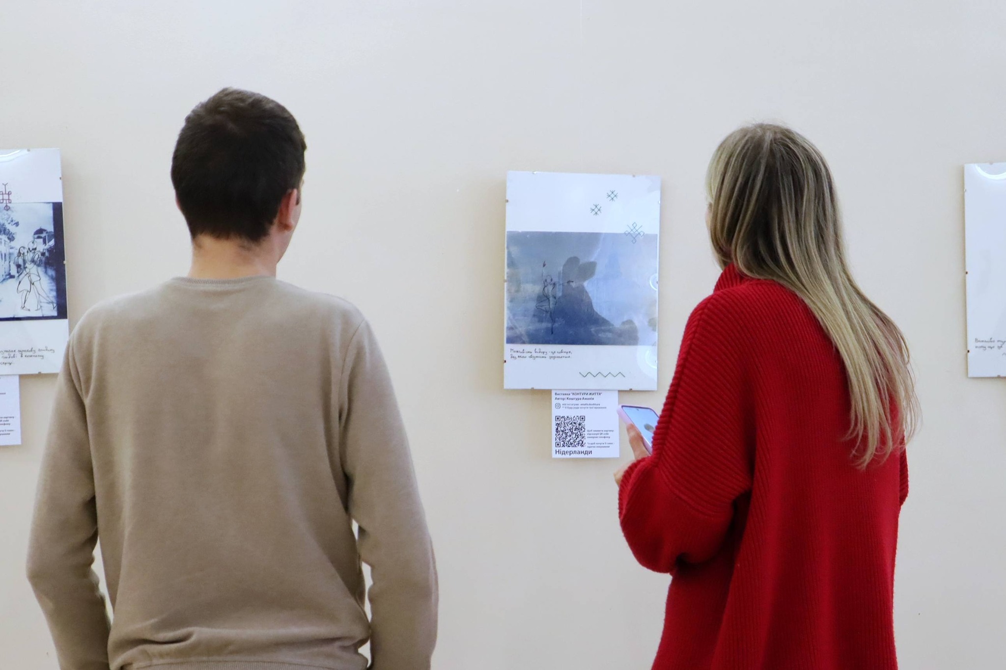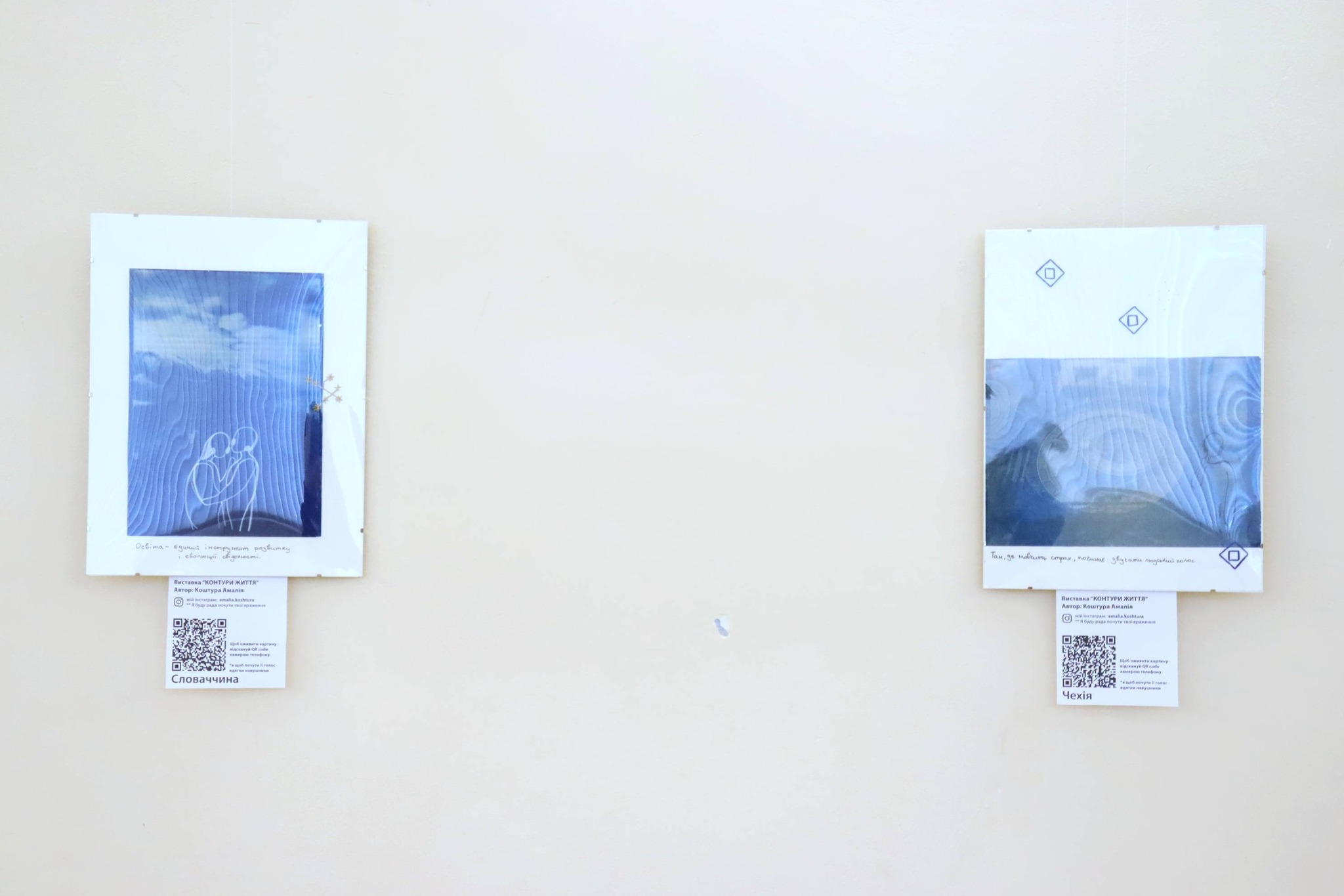 Авторка виставки — студентка четвертого курсу коледжу мистецтв — представила серію робіт, виконаних у техніках ціанотипії та силуетного рисунку. У цих роботах світло і тінь стають повноцінними співтворцями образу: світло ніби «малює» час, а контур фіксує людську присутність у просторі.