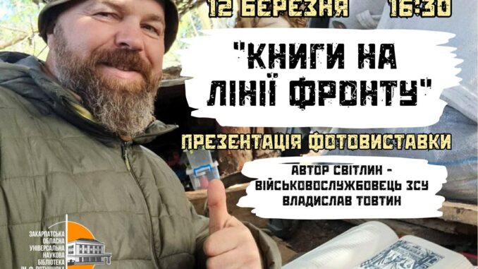 В Ужгороді 12 березня у Закарпатській обласній універсальній науковій бібліотеці ім. Федора Потушняка відбудеться відкриття фотовиставки «Книги на лінії фронту».