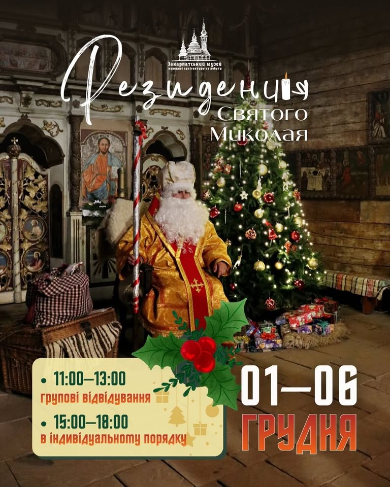 Резиденція працюватиме з 1 до 6 грудня. Для організованих груп (дитсадків і шкільних класів) двері будуть відкриті з 11:00 до 13:00, а для індивідуальних відвідувачів — з 15:00 до 18:00.