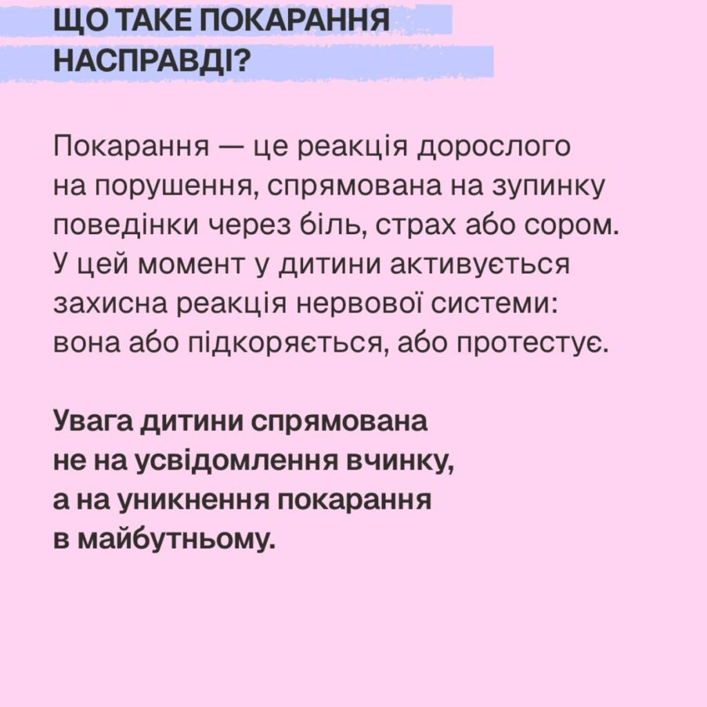 Покарання – це реакція дорослого на порушення, спрямована на зупинку поведінки через біль, страх або сором.