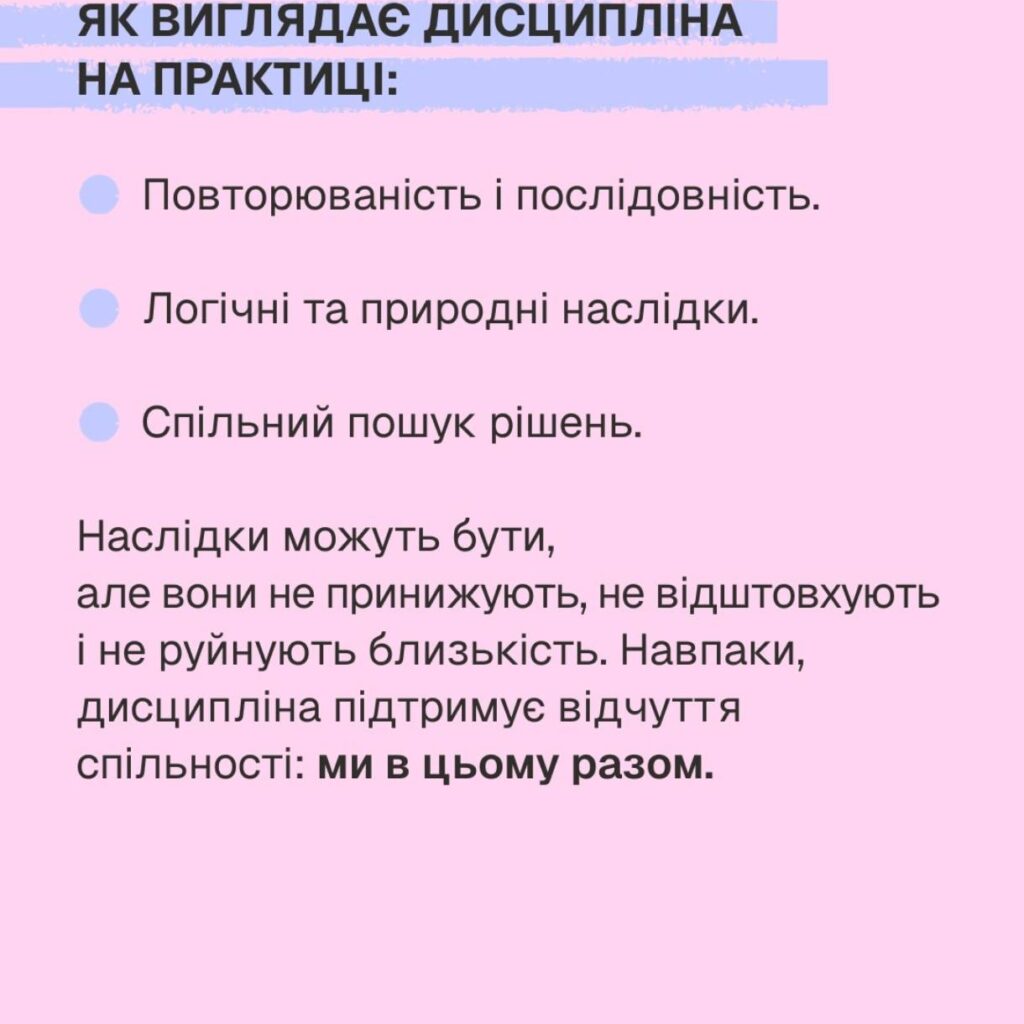 Дисципліна передбачає – повторюваність і послідовність, логічні й природні наслідки, спільний пошук рішень.