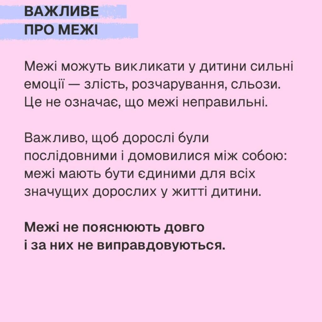 Межі – це рамка безпеки й стосунків, яку дорослий встановлює і тримає незалежно від поведінки дитини.