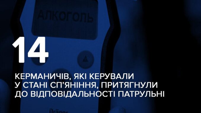 Минулого тижня поліція Закарпаття зафіксувала 14 випадків керування транспортними засобами у стані алкогольного сп’яніння.