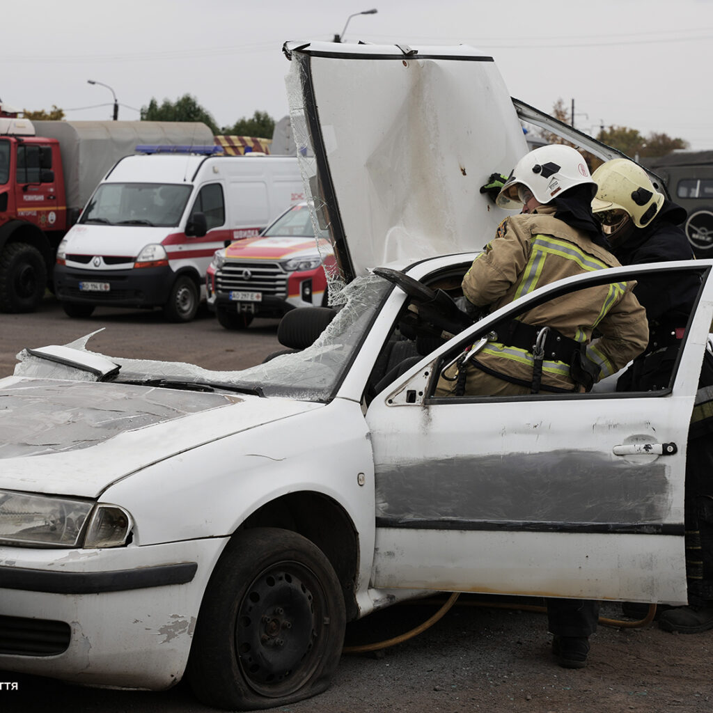 Під час тренувань рятувальники здійснили розвідку, за допомогою спецінструменту деблокували постраждалих і забезпечили пожежну безпеку на місці умовної аварії.
