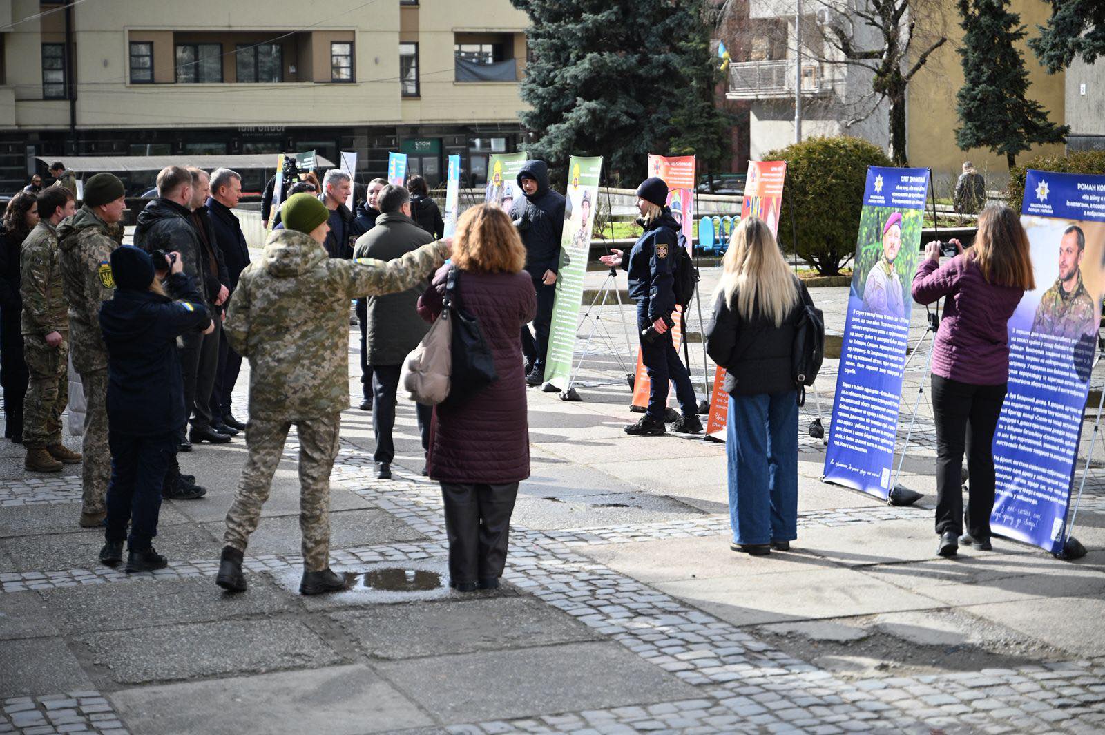 Відкриття виставки зібрало мешканців міста, військових, представників влади та небайдужих ужгородців. Люди зупиняються біля портретів, читають історії захисників і дякують тим, хто сьогодні стоїть на захисті України.