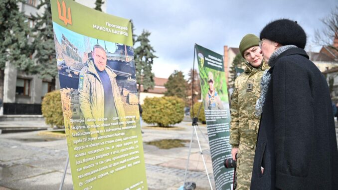 Відкриття виставки зібрало мешканців міста, військових, представників влади та небайдужих ужгородців. Люди зупиняються біля портретів, читають історії захисників і дякують тим, хто сьогодні стоїть на захисті України.