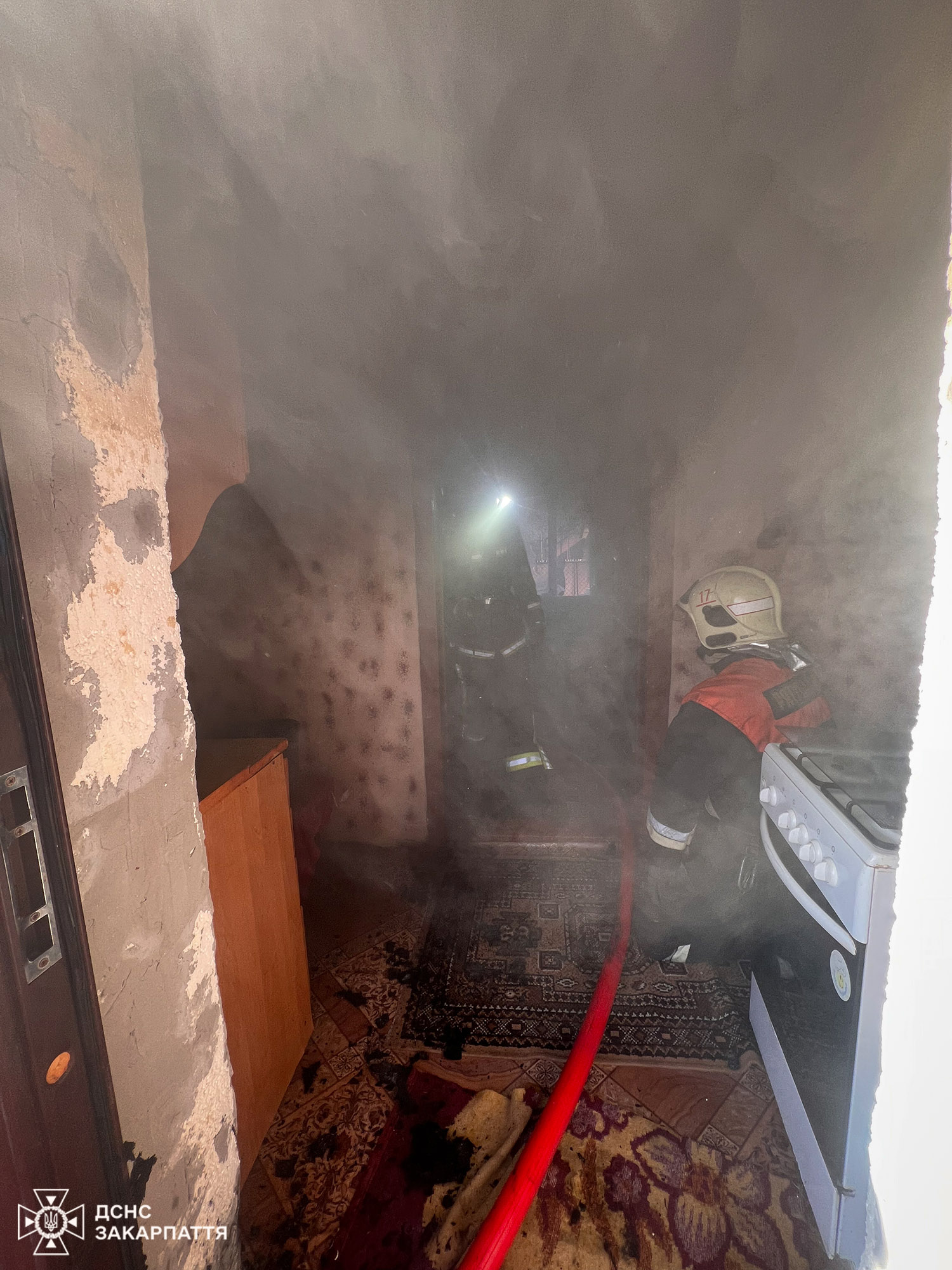 На місце події прибули два відділення 17-ї державної пожежно-рятувальної частини. Через щільне задимлення рятувальники працювали в апаратах захисту органів дихання та зору. Завдяки оперативним діям вогнеборців пожежу площею 12 кв. м ліквідували всього за 11 хвилин.